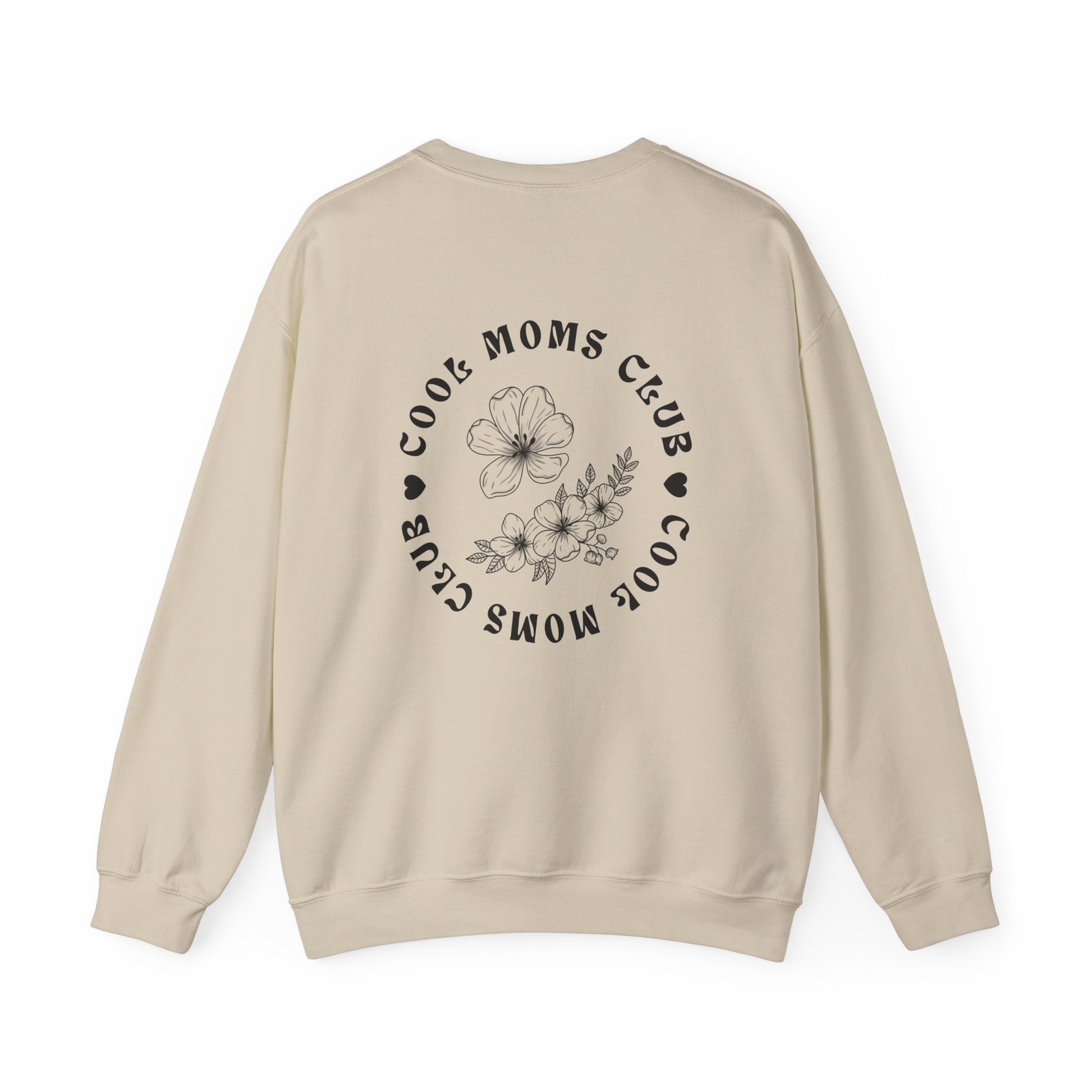 Soft, slightly oversized crewneck made for moms who move between playdates, coffee runs, and quiet evenings without losing their style. The front bears bold, retro-inspired lettering that reads “COOL MOMS CLUB,” while the back shows the same mantra circling a delicate hand-drawn floral motif — a subtle mix of strength and gentleness. The midweight 50/50 knit feels cozy against the skin and holds its shape through washes. Wear it layered over tees or with leggings for a lived-in, comfortable look that still reads intentionally put-together.